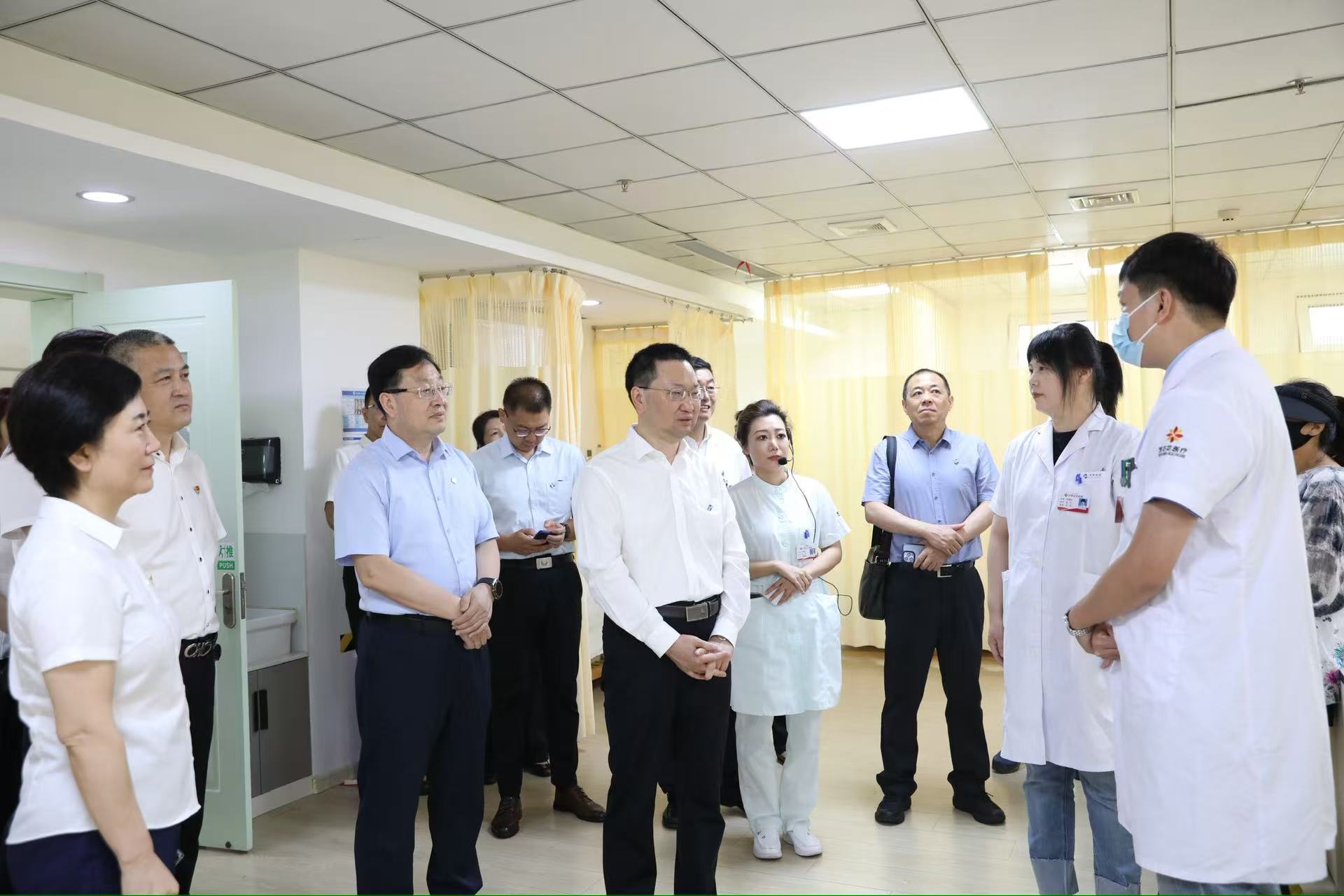 在盘锦辽油宝石花医院,姚建红一行实地调研医院康复医学中心、急诊医学科、心血管内一科、门诊部及检验中心等地,了解科室技术特色、人才队伍建设、学科发展等方面工作情况,并与一线医护人员亲切交流。