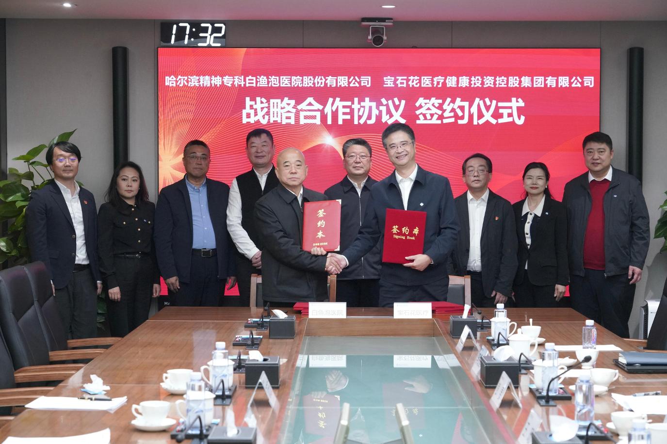 1月9日,通用技术宝石花医疗与哈尔滨精神专科白渔泡医院股份有限公司签署战略合作协议。宝石花医疗董事长、党委书记王旸,董事、总经理、党委副书记张辉,董事、党委副书记彭旻,白渔泡医院股份有限公司董事长谢佩俊、副书记刘宏石出席签约仪式。张辉与谢佩俊代表双方签署战略合作协议。