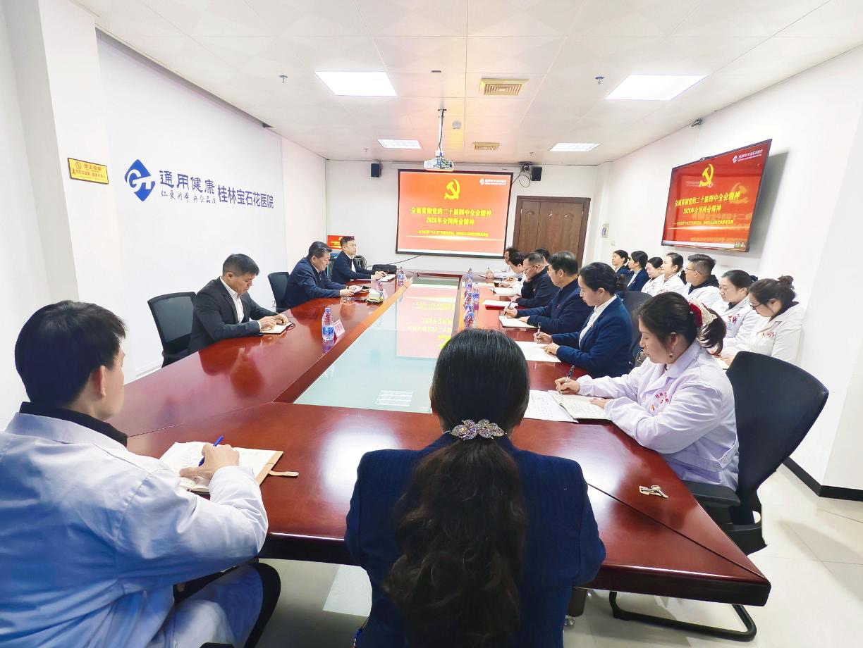 随后,为深入学习贯彻党的二十届四中全会精神,全面落实2026年全国两会部署,王旸一行赴通用技术桂林宝石花公司,开展形势任务教育专题宣讲。宣讲中,王旸以“6个核心数字”解读二十届四中全会精神,紧扣两会部署及央企医疗新要求,明确八方面举措。结合桂林实际,分析政策红利与挑战,强调一体化转型优势。传达党中央对央企指示、通用技术集团“1696”战略及健康公司五大任务、宝石花医疗2026年“11345”工作方针。号召干部职工以“开局即决战、起步即冲刺”的姿态,将学习转化为实效,实现“十五五”开门红,为健康中国贡献力量。